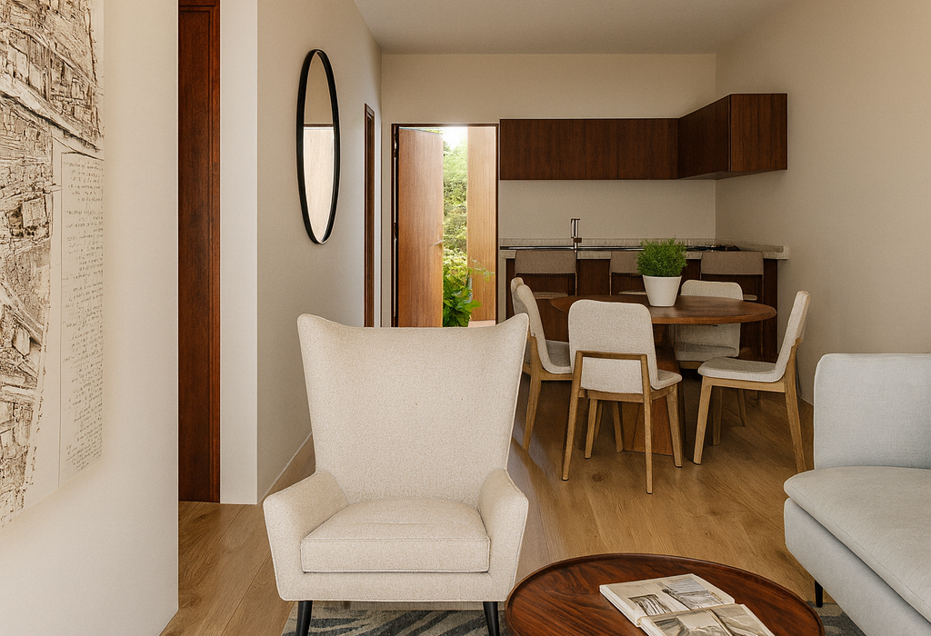 Una vivienda en una planta con un terreno más amplio que el promedio, ideal para crecer a tu ritmo y aprovechar cada metro.